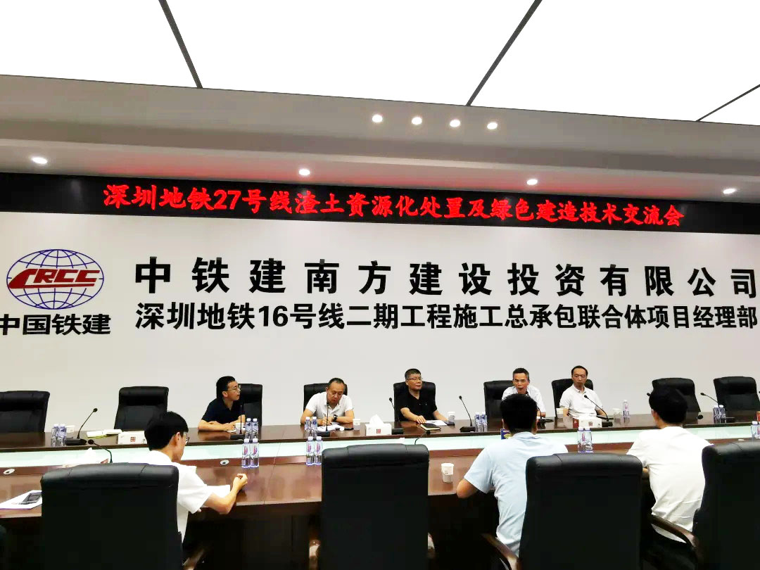 5月8日,中國鐵建南方投資黨委副書記、紀(jì)委書記姜立國、27號(hào)線指揮部總工程師董志;廣東省建科院創(chuàng)新研究院劉遠(yuǎn)亮博士、深圳市中科綠建環(huán)??偨?jīng)理呂高楊及27號(hào)線各工程局有關(guān)管理人員參加了渣土資源化處置及綠色建造技術(shù)交流。